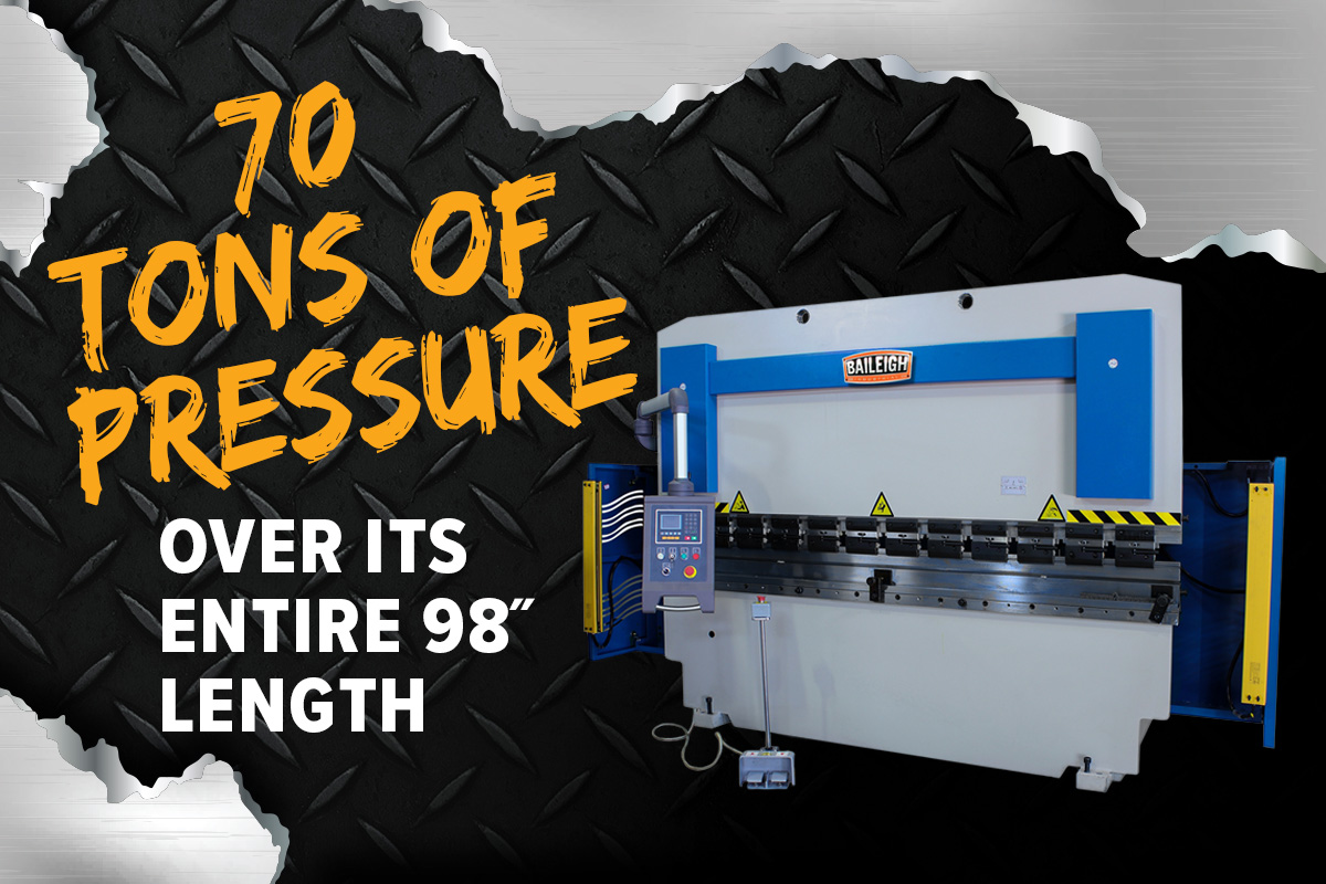 Compact CNC Hydraulic Press Brake: The Baileigh BP-7098CNC Press Brake offers 70 tons of bending force over a 98″ (8 ft) bed, delivering industrial-grade sheet metal forming in a space-efficient footprint ideal for small to mid-size fabrication shops and production environments. Its 220 V 3-phase hydraulic drive system combined with programmable CNC control provides repeatable, high-quality bends for a wide range of jobs.