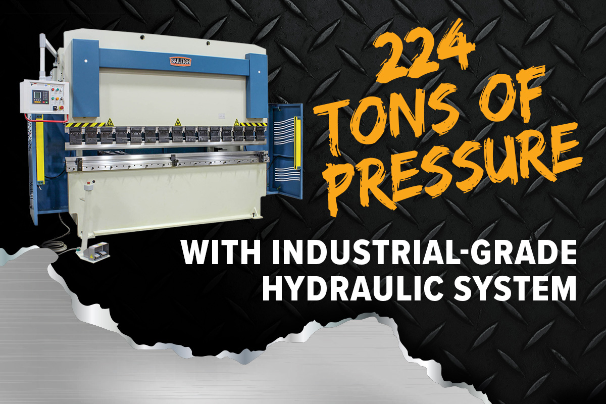 High-Capacity CNC Hydraulic Press Brake: The Baileigh BP-22413CNC Press Brake is a heavy-duty 224 ton hydraulic CNC press brake engineered for demanding fabrication shops and industrial metal forming. With a 13′ (157″) bending bed, this machine provides ample space and force for large panel bending, structural components, and high-production work.