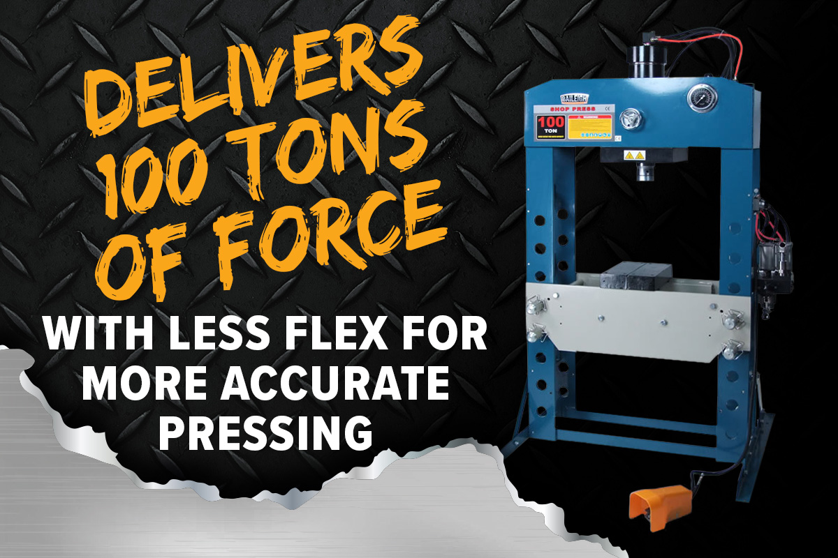 Product Description: The Baileigh HSP-100A is a professional-grade 100 ton pneumatic H-frame shop pressengineered for maximum power, versatility, and longevity. Combining air-powered convenience with hydraulic precision, this industrial press effortlessly handles heavy pressing, bending, and straightening tasks in fabrication shops, repair facilities, and maintenance departments.